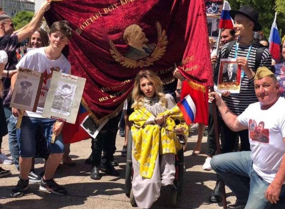 No decorrer do evento realizou-se a marcha denominada “Regimento imortal”, que visava homenagear os combatentes soviéticos da II G. M. Os participantes marcharam com as fotografias dos seus supostos familiares combatentes. A marcha foi liderada pela candidata da Rússia à Eurovisão 2018, cantora Yulia Samoilova. Na marcha foi usada, de forma indevida e abusiva, a bandeira nacional da Ucrânia, sem que o país seja representado pelos seus representantes legítimos. Os participantes da marcha, também ostentaram as bandeiras militares soviéticas de proveniência duvidosa e das organizações terroristas, ativas no leste da Ucrânia, criadas, apoiadas e financiadas pela Federação Russa. A cantora Yulia Samoilova, nas fotografias junto à umcidadão que ostentava no peito a imagem do ditador soviético Estaline, participou activamente e apoiou abertamente essa provocação. É de recordar que em 2017 a cantora tinha desrespeitado a lei ucraniana, visitando, de forma ilegal, o território da península da Crimeia, ocupada e anexada pelo exército russo em 2014, em desafio aberto às leis ucranianas e às resoluções da UE que condenam este acto hostil e unilateral da Federação Russa. Devido ao seu apoio ao terrorismo e anexação ilegal da Crimeia, Yulia Samoilova foi oficialmente proibida de visitar Ucrânia por um período de cinco anos de calendário.