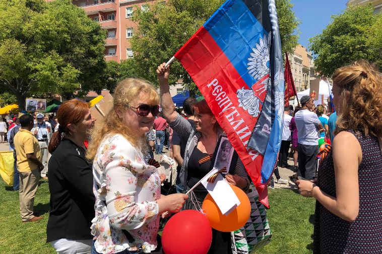 Mais, os organizadores do evento “Festa de Vitória e Paz”estiveram presentes no local, tal como representantes da embaixada russa e nada fizeram para impedir o uso dos símbolos da