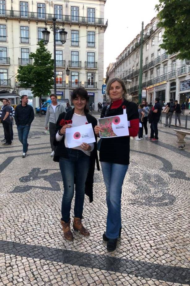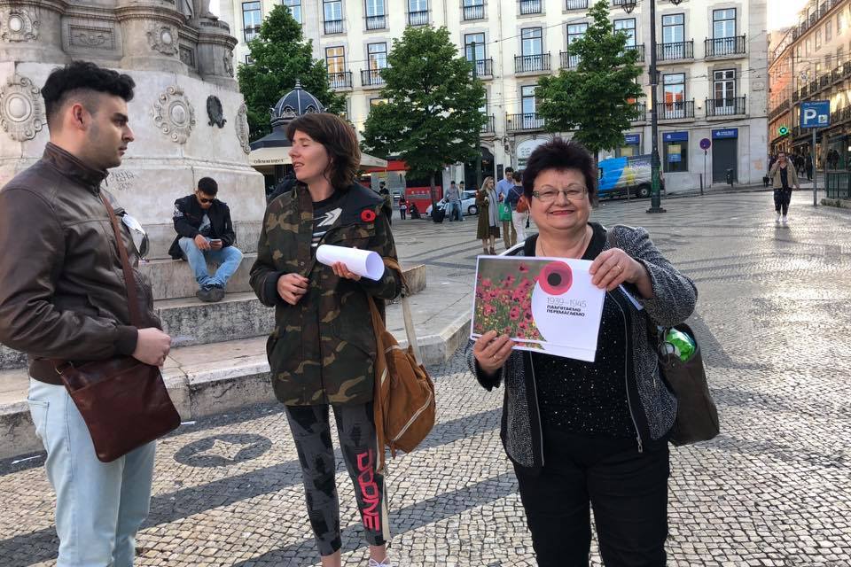 Сьогодні в Лісабоні роздавали маки з надписами: «Памятаймо. 1939-1945 II Світова війна. 2014 - ? Російська агресія проти України»