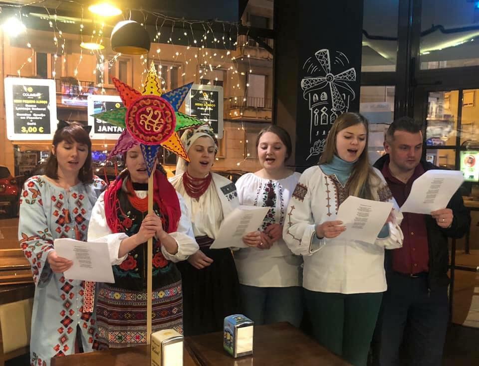 24O grupo de jovens ucranianos cantou ontem as Janeiras /Kolyadky na pastelaria Colmeia.