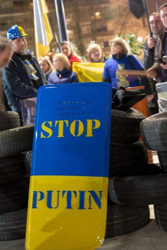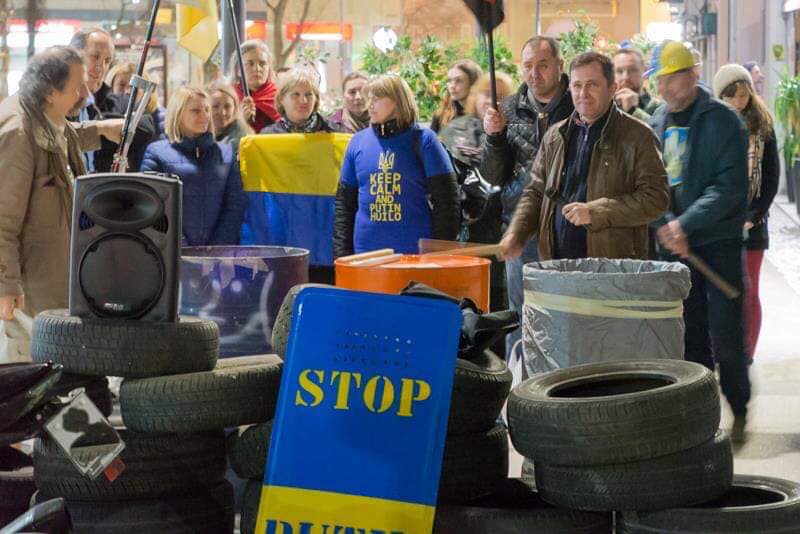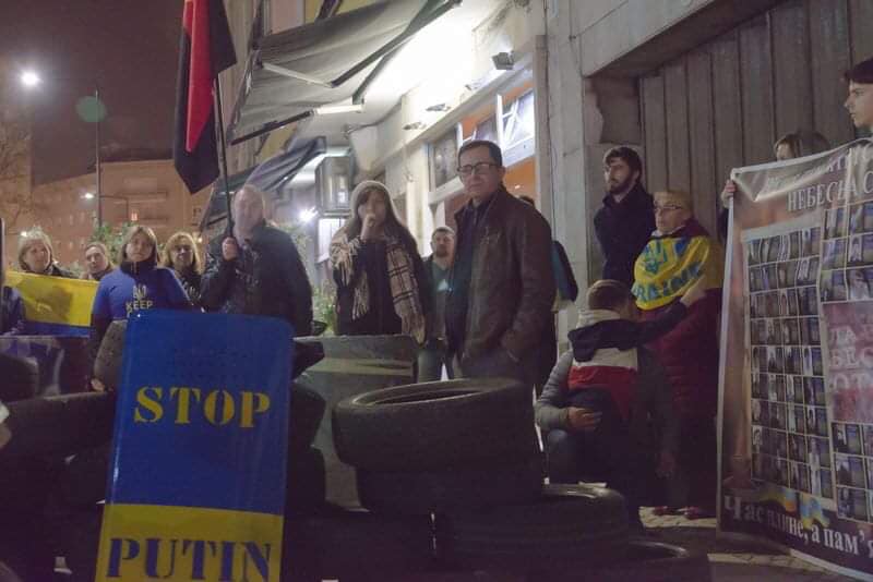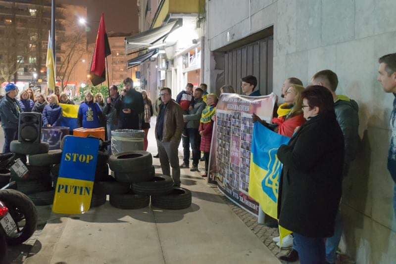 Автомобільні покришки, гуркіт по металевим бочкам та вигуки: «Путін - терорист; Москва - основна загроза миру на Землі», так сьогодні був перерваний тихий Лісабонський вечір у центрі міста, перед московським посольством.