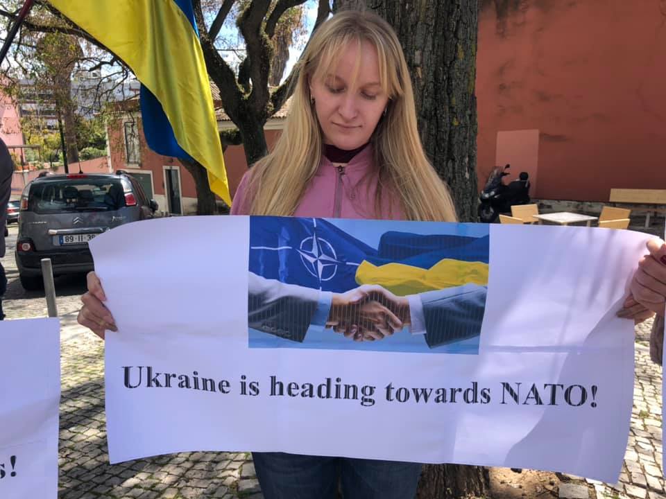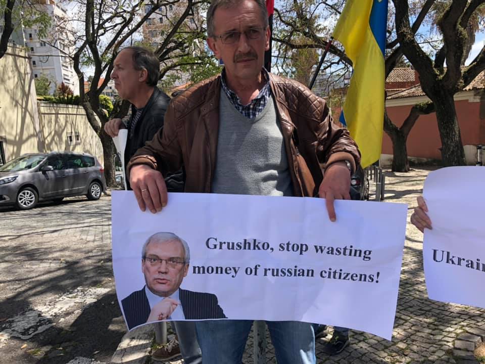 Assim, conhecendo a natureza da sua missão propagandista, anti-ucraniana e anti-europeia, os representantes da comunidade ucraniana e como eleitores dos deputados nacionais para o Parlamento Europeu, organizaram uma manifestação-protesto em frente ao Ministério dos Negócios Estrangeiros de Portugal para chamar a atenção em relação a tentativa de Moscovo de convencer os governos europeus a não admitir Ucrânia à NATO e remover as sanções ao agressivo violador dos acordos internacionais - Rússia.