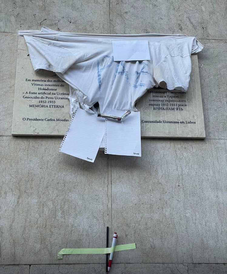 На другий день, після інавгурації меморіальної дошки у Лісабоні, в памʼять жертв Голодомору в Україні, був вчинений акт вандалізму.