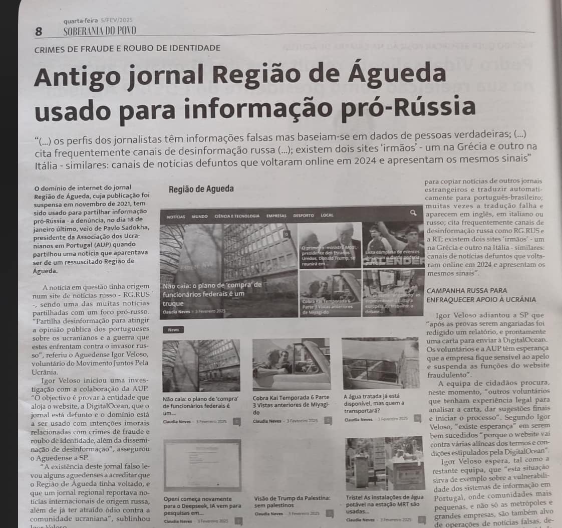Йдеться мова про інтернет платформу «Região de Águeda» регіональне інтернет-видання на Півночі Португалії, яке офіційно припинило своє існування у 2023 році і назву якого, російські спецслужби використали для поширення промосковських наративів для португаломовних країн.
