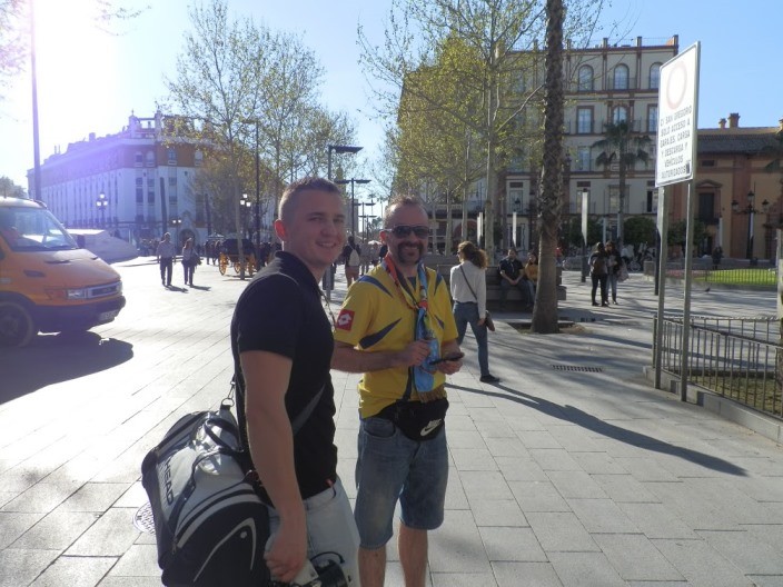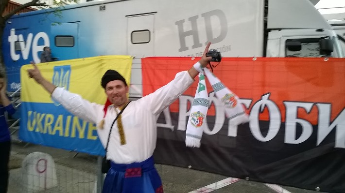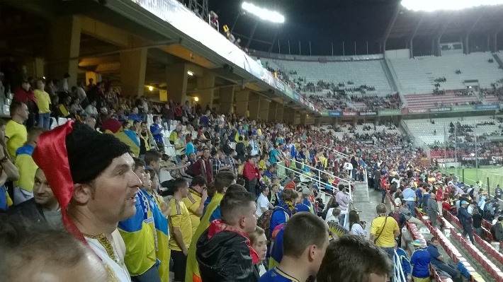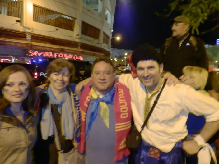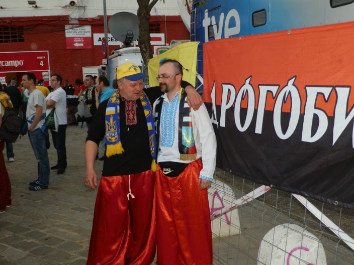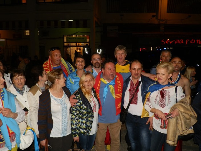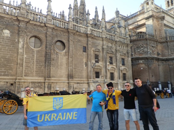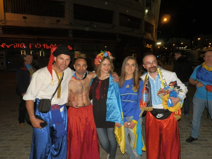 Футбольний матч кваліфікації до ЄВРО-2016 між збірними Іспанії та України у Севільї відбувся не без підтримки нашої збірної українськими козаками з Лісабону.