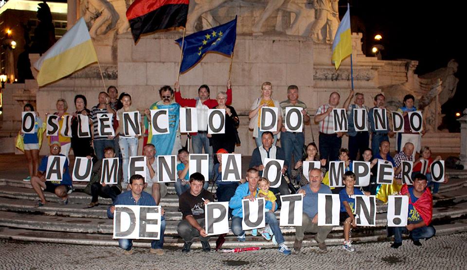 Такий заклик сьогодні українці в Португалії сформували живим ланцюгом навколо монумента португальському державному діячу і політику – маркізу Помбалу, що відомий кожному лісабонцю, як відбудовник, повністю зруйнованого після страшного землетрусу