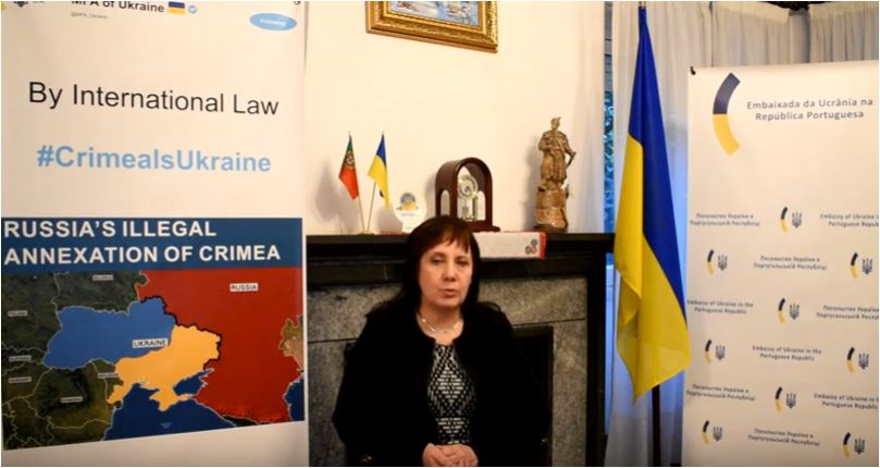 Videomensagem da Embaixadora da Ucrânia, Inna Ohnivets, a respeito do uso do logotipo da Embaixada da Ucrânia na informação sobre o documentário «A Crimeia, o seu passado e presente» de Inga Wolfram de teor totalmente