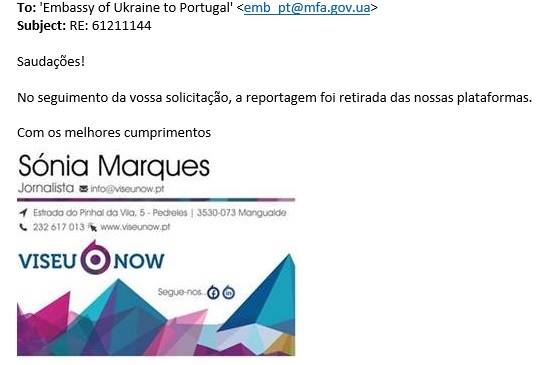 Детальніше:Відповідь Viseu Now на лист Посла України Інни Огнівець
