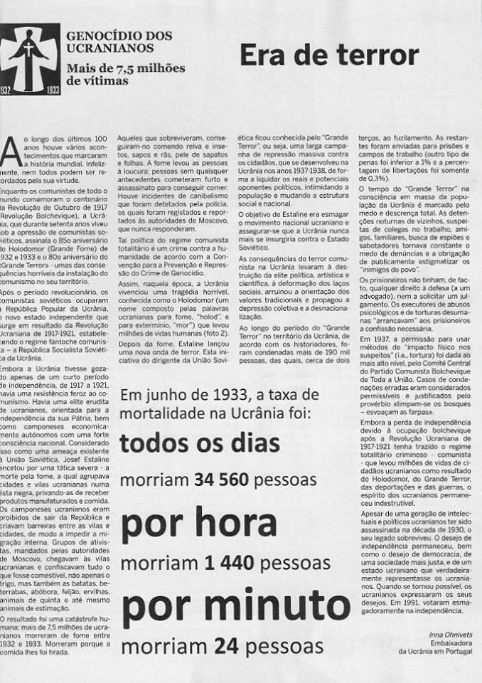 Сьогодні, 25 листопада 2017 року у Лісабоні відбулися 2 події з нагоди 85-х роковин Голодомору 1932-1933 років в Україні.