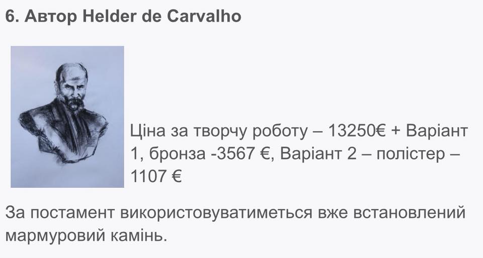 Детальніше:Завершився конкурс вибору проекту погруддя Т. Шевченка у Лісабоні