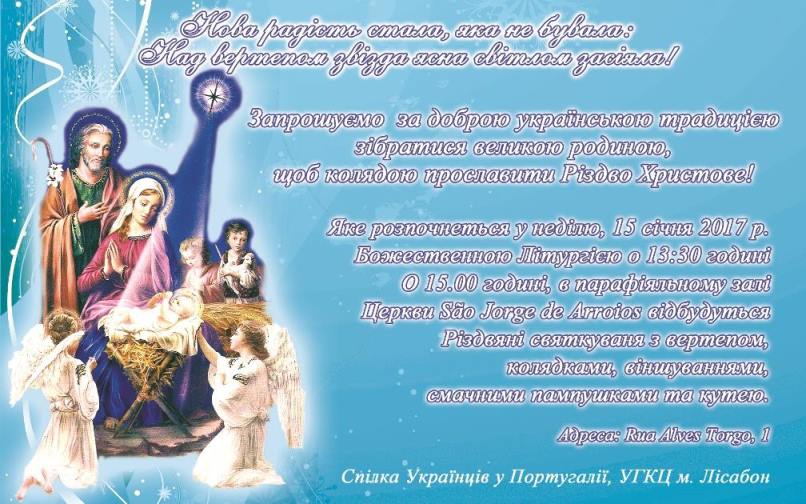 Детальніше:Вітання Спілки українців у Португалії з Різдвяними святами