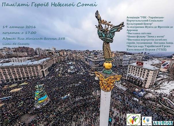 19 лютого у Лісабоні відбувся пам'ятний вечір до 2-Ї річниці трагічних подій на Майдані. У залі Ліцею Камоеш португальської столиці вирувала особлива атмосфера... Надзвичайно душевно організований вечір Асоціацією Solidariedade Ucrânia у взаємодії