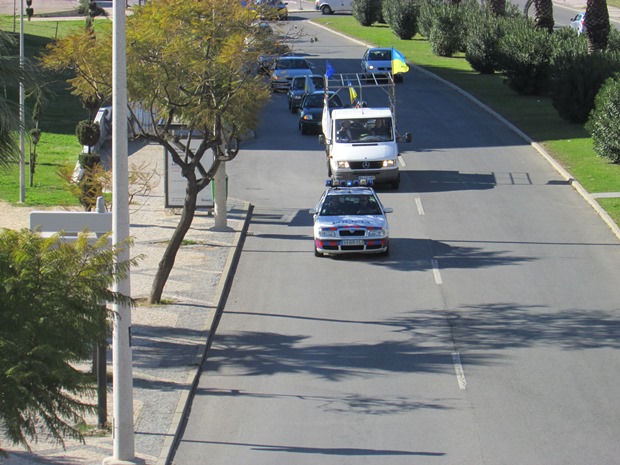 Південне португальське місто Фару заполонили сьогодні жовто-блакитні кольори. В знак солідарності з українськими мітингувальниками на захист демократичних цінностей, в знак солідарності з ув'язненими учасниками АвтоМайдану в Києві Спілка українців Алґарве за сприяння Української школи імені Т.Шевченка м. Фару організувала “повільний марш» (переклад з португальської – marcha lenta). Колоною в 80 автомобілів, за супроводу місцевої поліції, українці Алґарве скористалися власним правом в демократичній Португалії – правом на свободу маніфестацій!