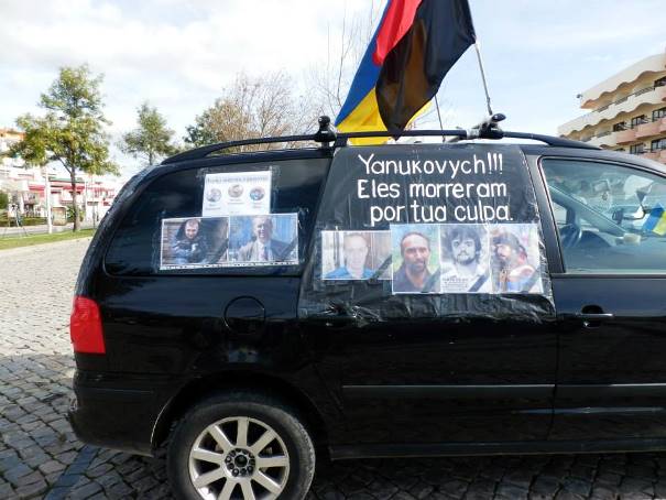 Як і повідомляла напередодні португальська радіостанція TSF, українці, замість звичних майданів, організували в неділю, 2 лютого, автопробіги (Автомайдани) у Лісабоні, Порту, Фаро та Албуфейрі, на знак солідарності з українським народом проти кривавого режиму Януковича.