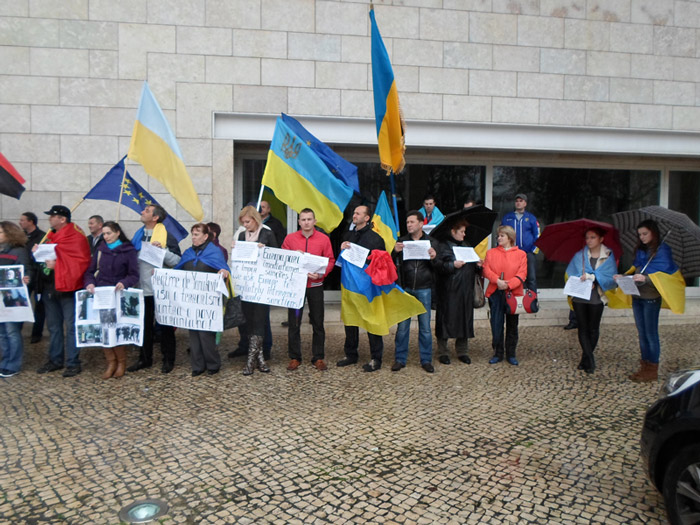 Учасники мітингу «Європа не мовчи!». Португалія, Лісабон, 9 лютого 2014 року.