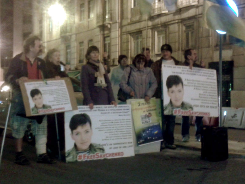 Сьогодні, 12 березня у Лісабоні, українці продовжили безстрокову акцію підтримки Надії Савченко, біля російського посольства.