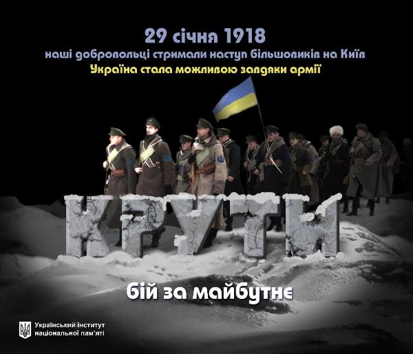 Раніше Український інститут національної пам’яті поширив інформаційні матеріали для українських медіа, органів державної влади та місцевого самоврядування про відзначення подій першої української революції ХХ століття. В цих методичних матеріал, зокрема, йдеться і про відзначення Дня пам’яті полеглих у бою під Крутами 29 січня 1918 року.