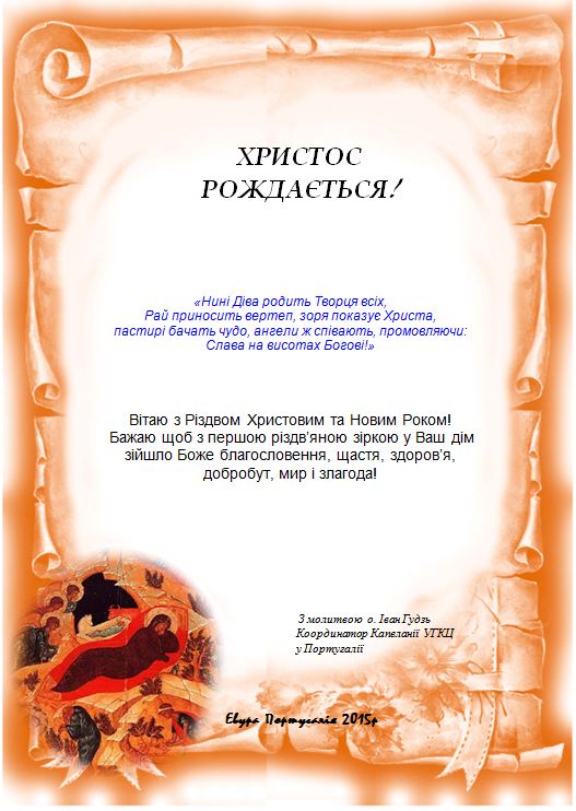 Бажаю щоб з першою різдв’яною зіркою у Ваш дім зійшло Боже благословення, щастя, здоров’я, добробут, мир і злагода!