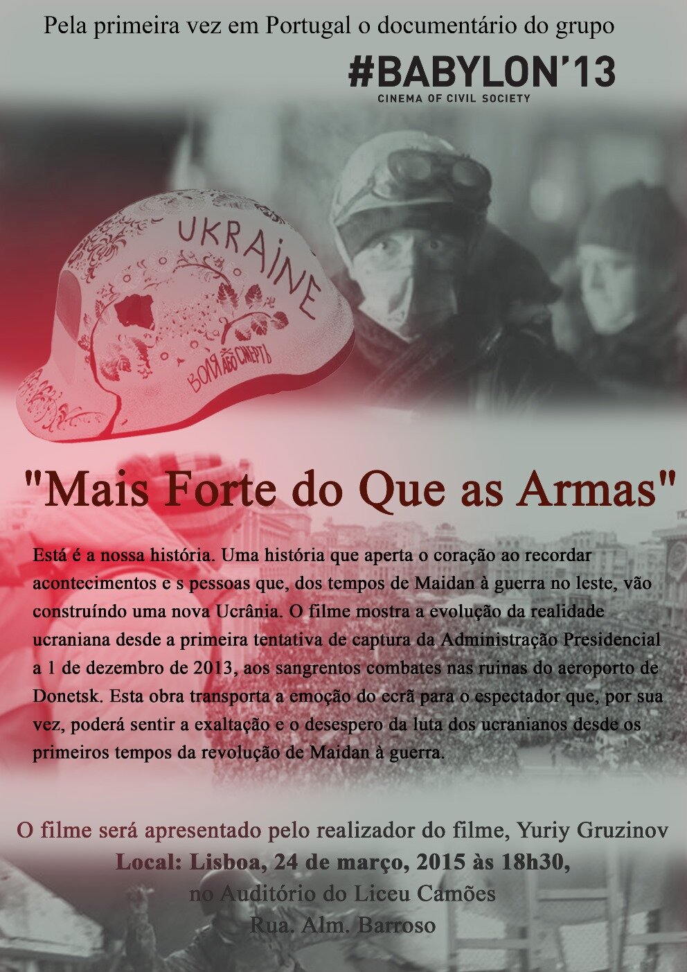O filme documentário do grupo Babilone 13, "Mais Forte do Que as Armas" apresentado pelo realizador do filme, Yuriy Gruzinov em Lisboa