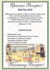 Щиросердечно запрошуємо Вас на спільне святкування Пасхи 2015 та традиційні великодні гаївки, яке відбудеться 12 квітня (Воскресіння Господнє) м. Лісабон (Rua Largo da Luz, 11) біля храму Imaculada Conceição в парку оо. Францисканців