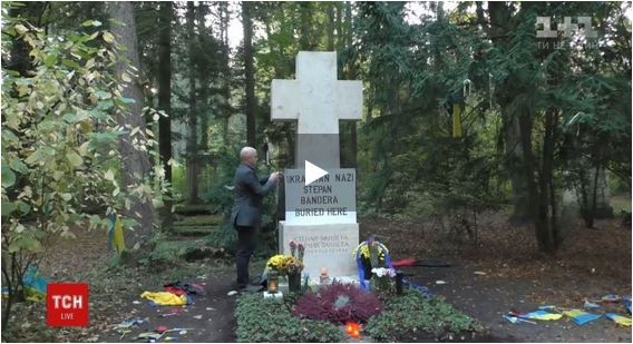 У німецькому місті Мюнхені прокремлівський пропагандист Грем Філліпс зірвав прапори з могили лідера ОУН Степана Бандери. Інцидент стався 15 жовтня 2018 року, у 59-ту річницю вбивства Бандери агентом КГБ в Мюнхені.