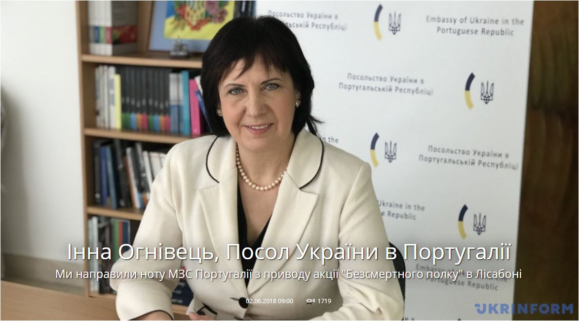Інна Огнівець, Посол України в Португалії. Ми направили ноту МЗС Португалії з приводу акції "Безсмертного полку" в Лісабоні, ексклюзивне інтерв'ю на