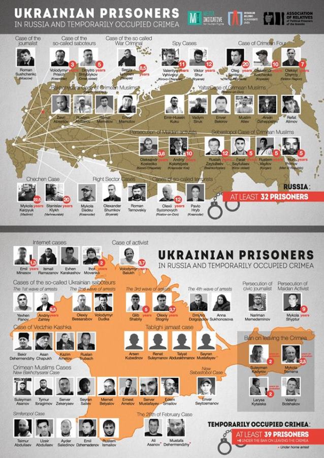 Oleg Sentsov is on the 23d day of his hunger strike. He announced that he will stop it only when Russia releases its Ukrainian political prisoners. His hunger strike has been joined by Oleksandr Kolchenko (6 days) and Oleksandr Shumkov (13 days). In