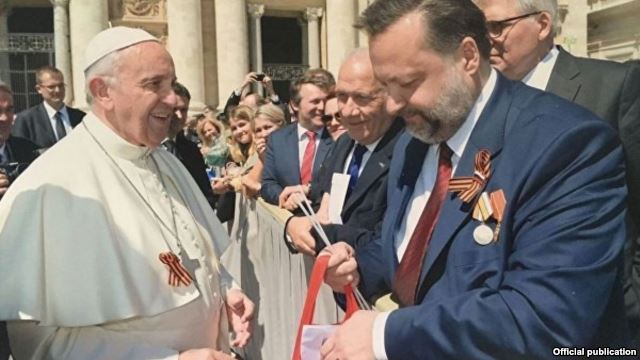 Фото Папи Франциска з «колорадською стрічкою» – безкоштовна реклама режиму Путіна, ефективніша за багатомільярдну пропаганду Кремля