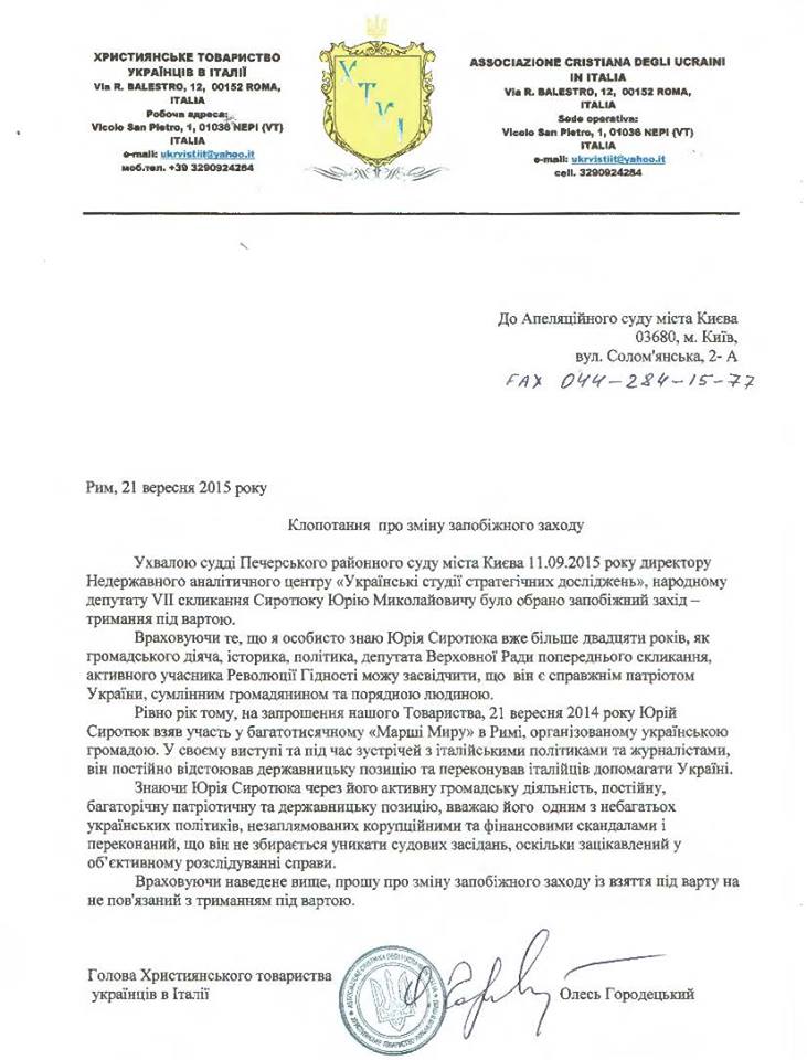 УКРАЇНЦІ ЄВРОПИ ВИМАГАЮТЬ НЕГАЙНОГО ЗВІЛЬНЕННЯ З-ПІД ВАРТИ ЮРІЯ СИРОТЮКА