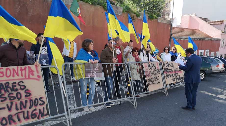 Сьогодні, українська громада у Лісабоні, провела мітинг напроти Кабінету міністрів Португалії, під час якого передала Секретарю уряду з питань молоді і спорту відкритий лист з проханням недопущення до спортивних змагань на території Португалії