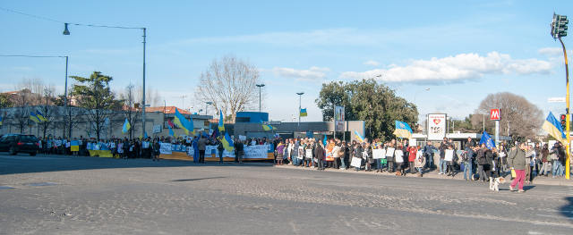 В четвер, 6 березня декілька сотень українців зібралися неподалік посольства Російської Федерації в Римі на маніфестацію проти російської окупації Криму. Присутні тримали плакати італійською мовою: «Путін! Руки геть від України», «Крим – це
