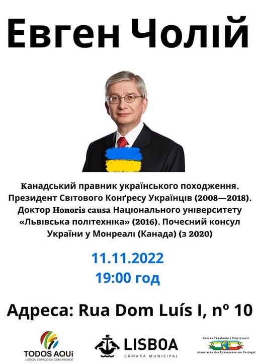 Завтра, 11 листопада о 19 годині, у центрі допомоги українським переселенцям відбудеться зустріч з екс-президентом Світового конгресу українців, головою ГО «Україна 2050», паном Євгеном Чолієм