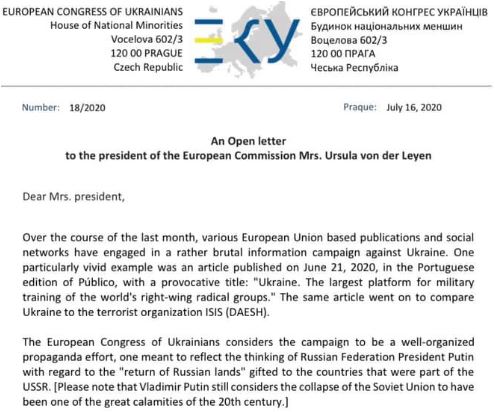 Звернення Європейського конгресу українців та українських громадських організацій в країнах ЄС до