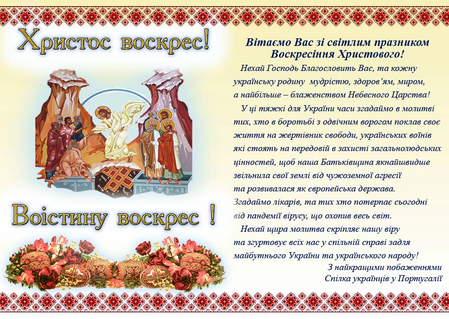 У Великодню неділю, за участі отця Івана Гудзя, архієпископ Евори - Дон Франціско дав благословення українцям Греко-Католикам в Португалії з нагоди Великодня.