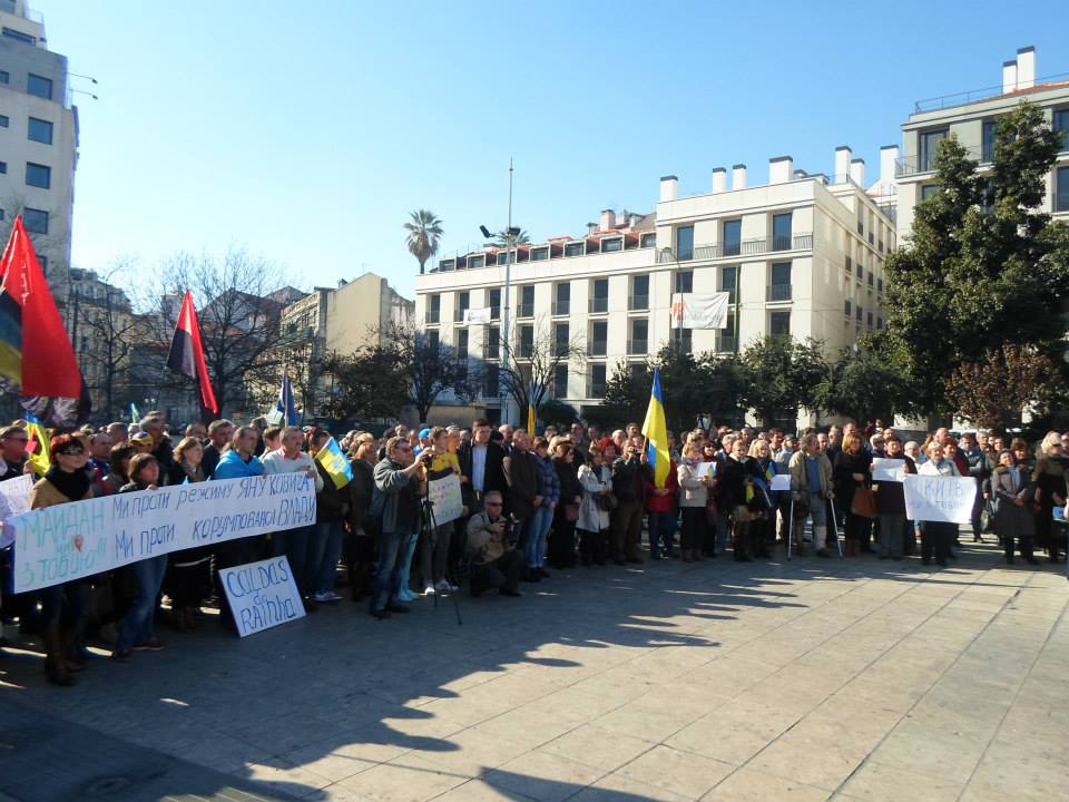 Так, у Лісабоні, на площі Мартін Моніж сьогодні пройшов мітинг, де зібралось понад 600 українців, які не тільки виголошували слова солідарності з своїми співвітчизниками в Україні і світі, але й зібрали 2700 € для потреб Євромайдану в Києві.