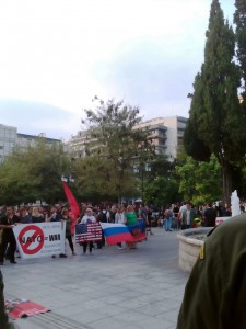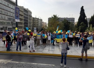 Однак, мирна українська маніфестація в Атенах була чисельною та успішною завдяки турботі правоохоронних структур Греції, які на основі офіційного звернення Координаційної Ради Об’єднаної Діаспори Українців Греції та Посольства України забезпечили спокій та порядок. Близько 250 грецьких українців, серед яких чимало цілих сімей з маленькими діточками, а також чисельні представники грузинської спільноти Атен, прийшли висловити протест проти експансивної та агресивної політики Путіна щодо України. Велику зацікавленість проявляли перехожі жителі та гості грецької столиці до синьо-жовтого, вишиванкованого мітингу, розпитуючи про справжній хід подій на сході України. Учасники акції роздавали листівки грецькою та англійською мовами.